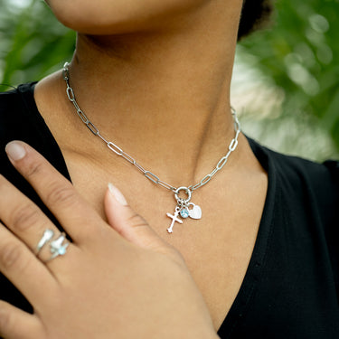 This modern necklace features the trending paper-clip-styled links to form a beautiful and interesting piece with an easy-to-open charm keeper attachment. It's a simple, casual necklace you can wear anywhere and with anything, but the best part? You can add your favorite charms and pendants or even layer them with other delicate chains to create a bold look. So don't miss out - grab yours today!