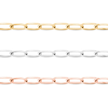 The Paperclip Chain has been so popular that it has now become a jewelry staple. Our Permanent Jewelry Paperclip Chain is a beautiful dainty version of this amazing style that is 5.5 x 2 mm thick. This item is sold by the inch.
