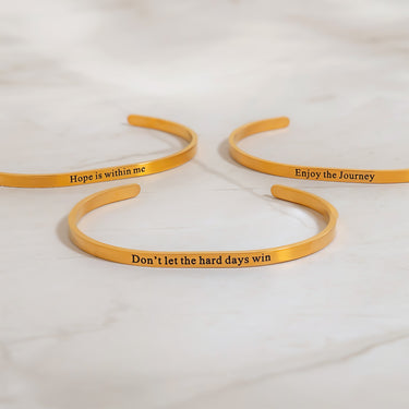 18K Gold PVD Dont Let Hard Days Win Engraved Bangle Bracelet / BRJ1036