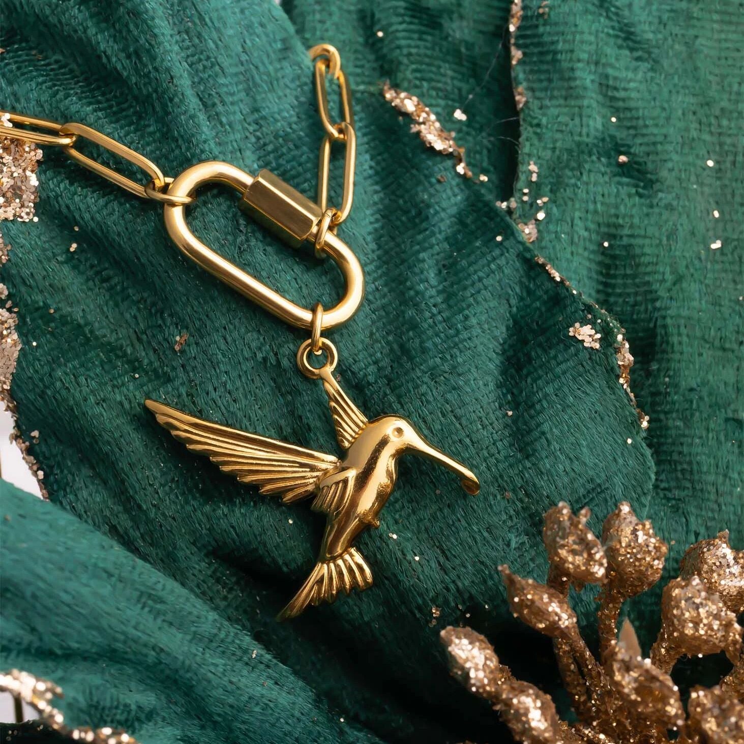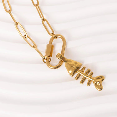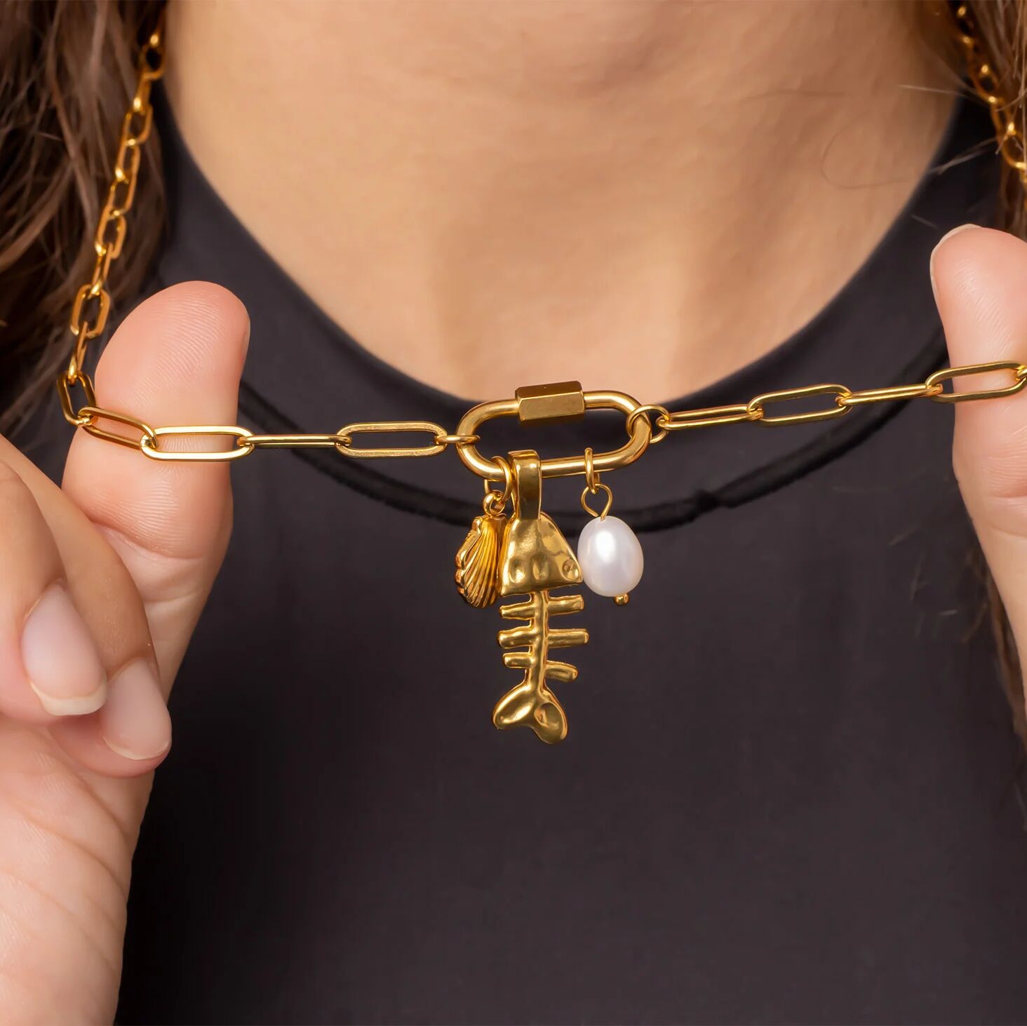 18K Gold PVD Stainless Steel Paperclip Carabiner Charm Holder Necklace / CHN0107