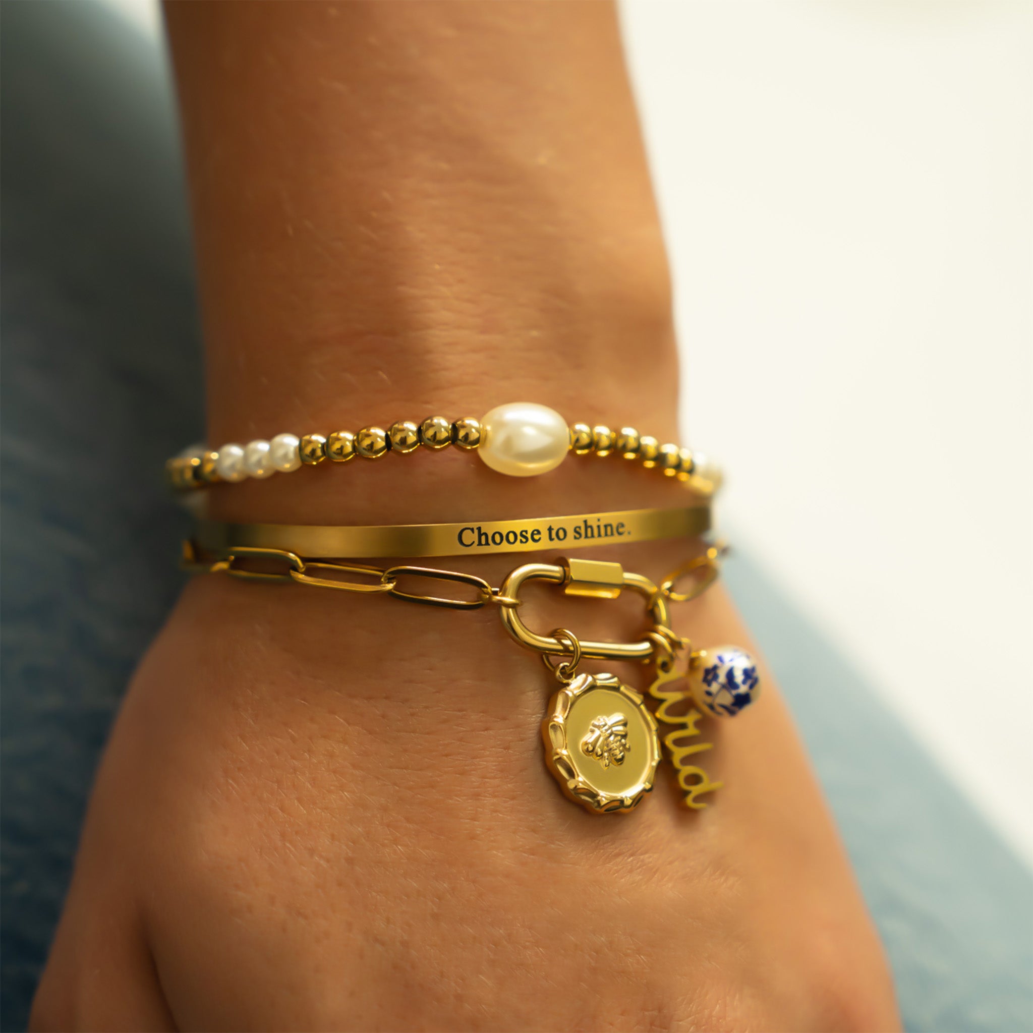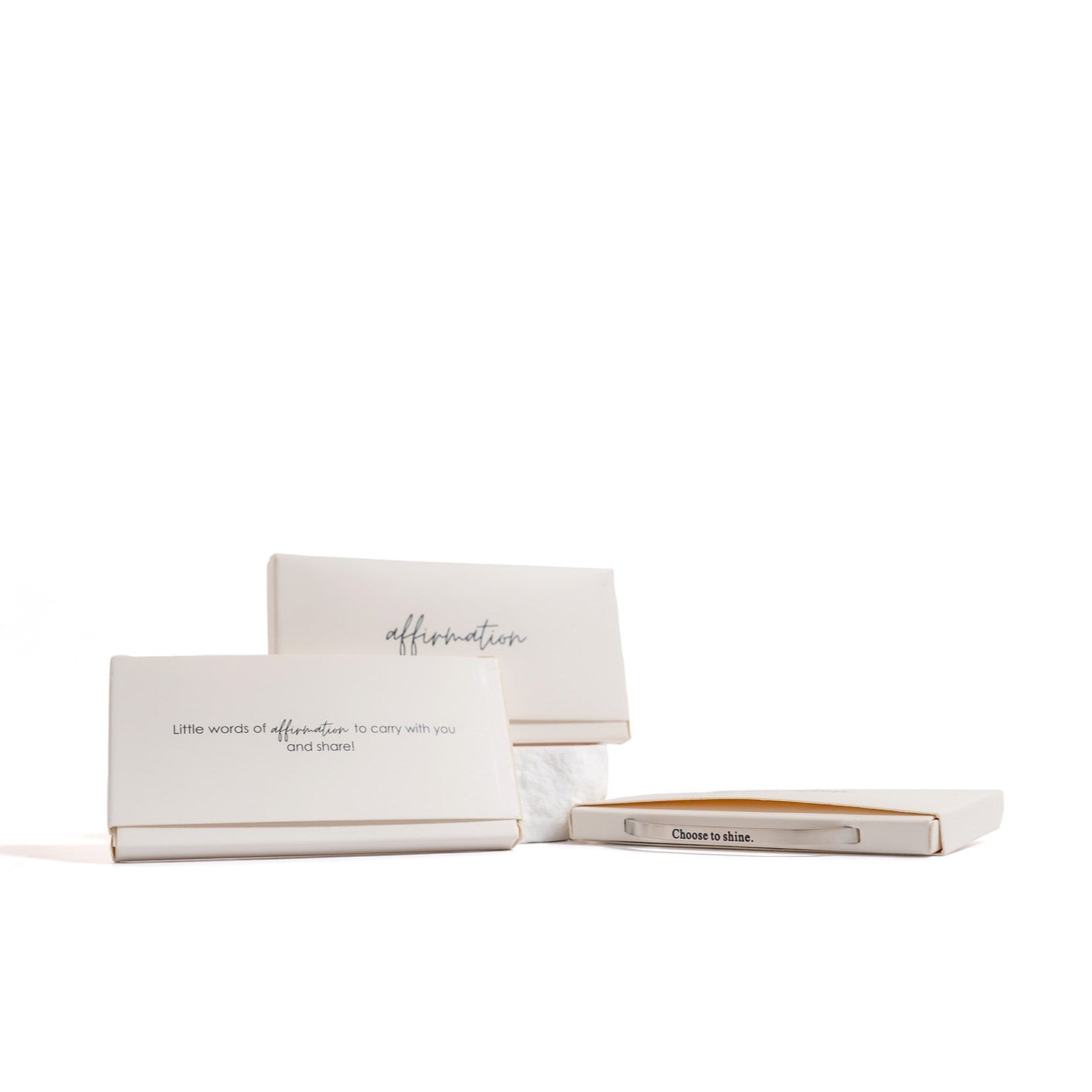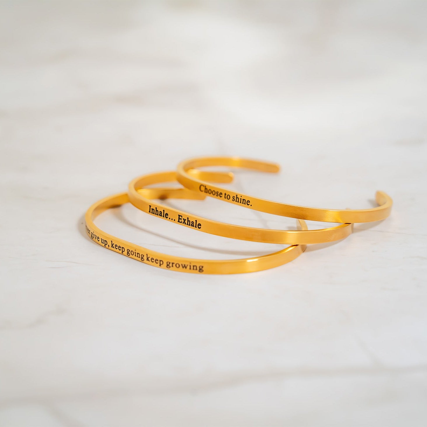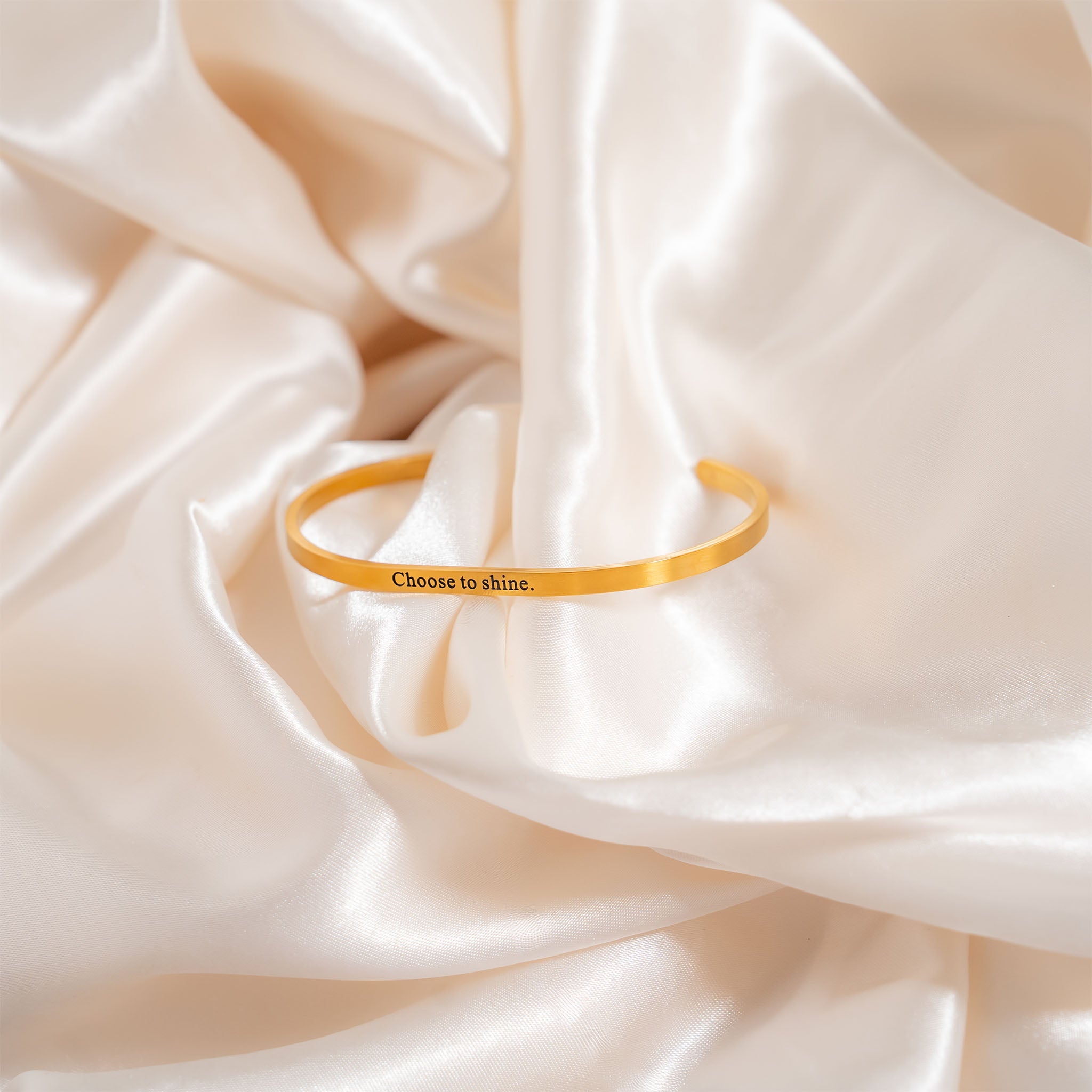 A timeless reminder to lead with confidence, this slim engraved cuff is crafted from durable stainless steel for lasting, tarnish‑resistant shine and offered in two finishes: radiant 18K Gold PVD or classic Stainless. The “Choose to shine.” message adds an uplifting touch you can wear every day, while the smooth, lightweight design slips on easily and sits comfortably for all‑day wear. Effortless on its own or stacked with your favorites, it pairs with everything from casual looks to dressier outfits.