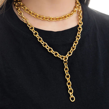 18K Gold PVD Stainless Steel Chunky Chain Lariat Necklace / CHN0153