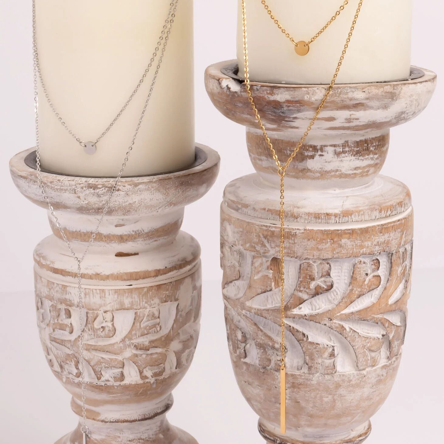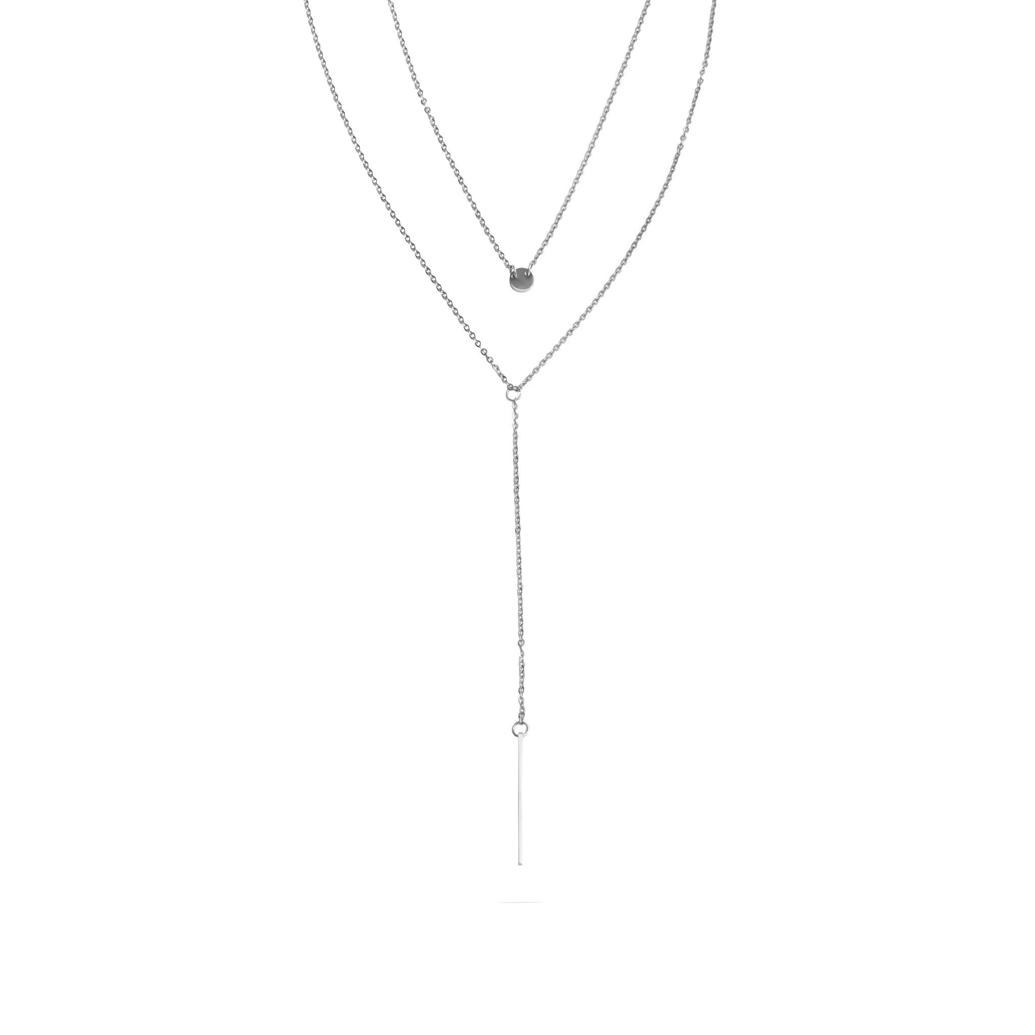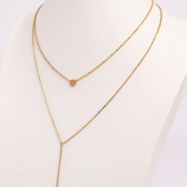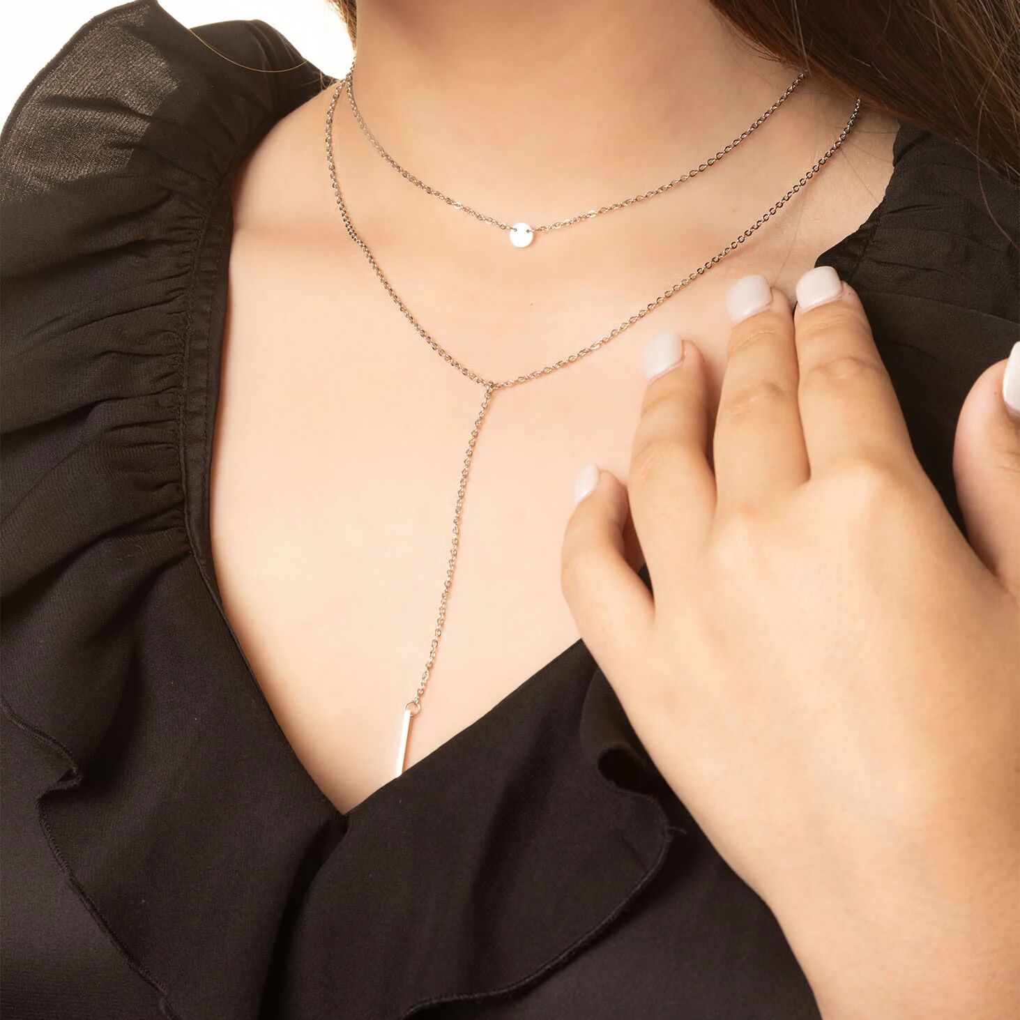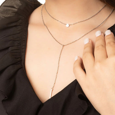 An easy, everyday layer, this two‑in‑one necklace pairs a delicate satellite chain with a simple circle accent and a sleek drop bar for a clean, modern silhouette that adds instant texture to any outfit. Crafted in high‑quality 18K Gold PVD over stainless steel or classic Stainless, it delivers lightweight, hypoallergenic comfort with water‑ and tarnish‑resistant shine that holds up to daily wear. Effortless on its own and made for stacking, this versatile style moves seamlessly through every season and every wardrobe.