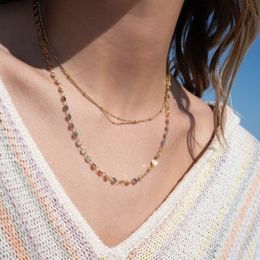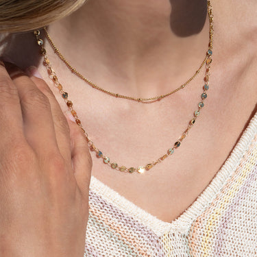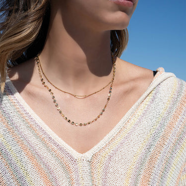18K Gold PVD Stainless Steel Circle & Satellite Chain Layered Necklace / CHN0012