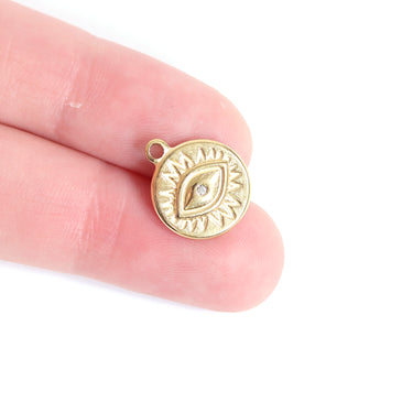 18K Gold PVD Stainless Steel Crystal Evil Eye Sun Disc Charm / PDL0127
