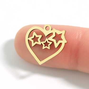 18K Gold PVD Stainless Steel Cutout Heart And Stars Charm / PDL0020
