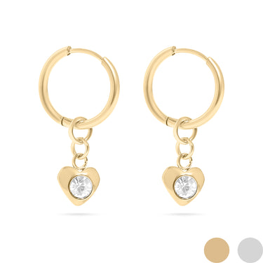 18K Gold PVD Stainless Steel CZ Heart Pendant Huggie Earrings / ERJ0040