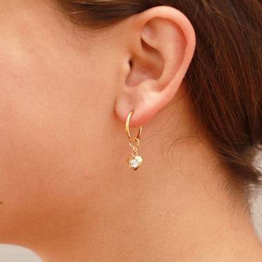 The CZ Heart Pendant Hoop Earrings are great as a stand alone seller, but are the perfect option to be paired with other huggies or stud earrings for a stacked look. Explore our complete Earring Collection to start building your own assortment of stacked earring looks!