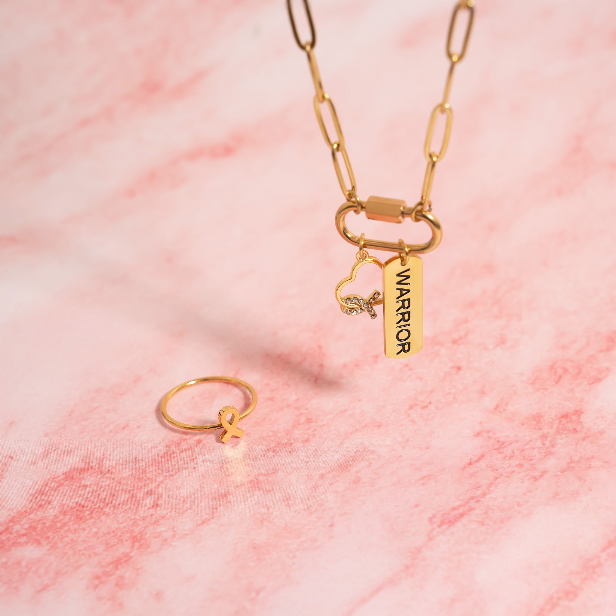 Celebrate strength and love with this meaningful charm, featuring a heart-shaped design intertwined with a cancer awareness ribbon. Crafted from durable 18K Gold PVD stainless steel, it’s accented with sparkling stones that add a touch of elegance and shine. A beautiful symbol of support, resilience, and compassion—perfect for honoring a personal journey or gifting to someone who inspires you.