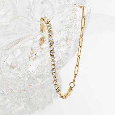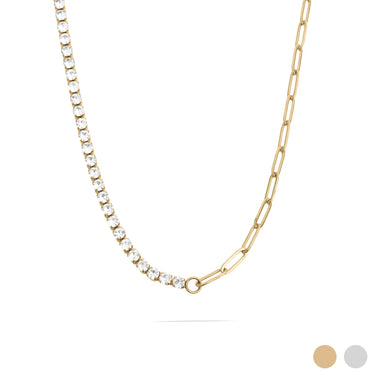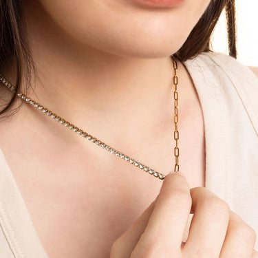 18K Gold PVD Stainless Steel Paperclip Tennis Chain Split Necklace / CHN0163
