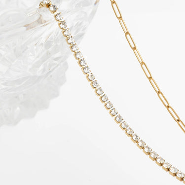 Discover the perfect balance of modern design and lasting quality with our 18K Gold PVD Stainless Steel Paperclip Tennis Split Chain Necklace. Crafted from polished stainless steel and finished in radiant 18K gold PVD, this necklace offers a durable, tarnish-resistant shine made for everyday wear. The dual-chain construction combines sleek paperclip links with a classic tennis-style chain, creating dimension, movement, and visual interest at the neckline. Versatile and effortlessly stylish, this statement piece layers beautifully or stands alone, transitioning seamlessly from casual looks to elevated styling.