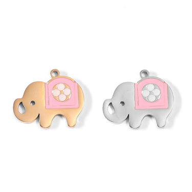 18K Gold PVD Stainless Steel Pink Epoxy Elephant Charm / PDL0073