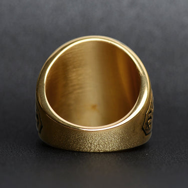 Honor, strength, and unwavering pride, the 18K Gold PVD Stainless Steel United States Marines Ring is a powerful tribute to the brave men and women of the Marines Corps. Featuring a bold, deep red stone that symbolizes sacrifice, this ring radiates both elegance and strength. The details on the side along with the centerpiece stone captures the spirit of service and dedication. A standout choice for collection, this ring is more than jewelry. Its a symbol of honor, crafted for those who serve and those who stand beside them.