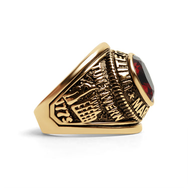 18K Gold PVD Stainless Steel Red Stone United States Marines Ring / MCR6002