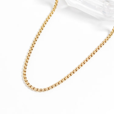 The 18K Gold PVD Stainless Steel Rounded Box Chain is strong, durable, and doesn't easily break.