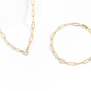 Elevate your jewelry collection with our 18K Gold PVD Stainless Steel Stone "Heart" Paperclip Chain Necklace, designed for those who appreciate both elegance and meaning. This stunning piece features an heart symbol adorned with sparkling clear stones that catch the light beautifully. The heart symbol represents love and affection, making this necklace the perfect gift for a loved one. The open nature of the paperclip chain makes it easily adjustable. Delicately minimalistic, it can also be layered with other necklaces for a customized necklace stack. Made from durable stainless steel with a luxurious 18K gold PVD finish, this necklace is designed to resist tarnishing and wear, ensuring longevity.