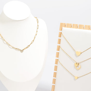The Wholesale 18K Gold PVD Stainless Steel "Heart" Paperclip Chain Necklace is made with a proprietary blend of 316L Surgical Steel.