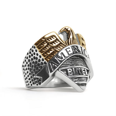 Stainless Steel "AMERICAN BIKER" With 18K Gold PVD Coated Eagle Ring / SCR4074