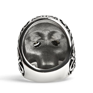 Black CZ Eyed Detailed Skull Stainless Steel Ring / SCR4045