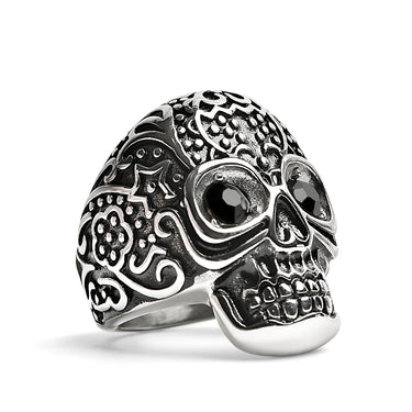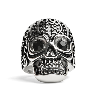 The Wholesale Black CZ Eyed Detailed Skull Stainless Steel Ring is made with a proprietary blend of 316L Surgical Steel.