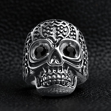 The Black CZ Eyed Detailed Skull Stainless Steel Ring is strong, durable, and doesn't easily break.