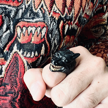 Introducing the newest and most luxurious ring yet- the Stainless Steel Black Wolf With 18K Gold PVD Coated Teeth Ring! This ring is truly one-of-a-kind, with its black wolf design and 18K gold PVD Coated teeth. It's the perfect statement piece for any animal lover or wild spirit! Made of high-quality stainless steel, that makes it longing and continuing. The black wolf design is incredibly detailed and realistic, and the 18K gold PVD Coated teeth add a touch of luxury.