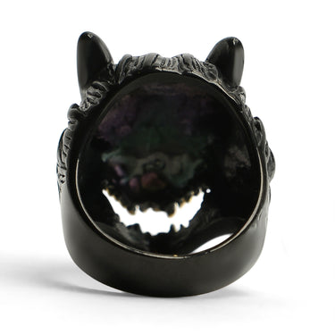 Stainless Steel Black Wolf With 18K Gold PVD Coated Teeth Ring / SCR3076