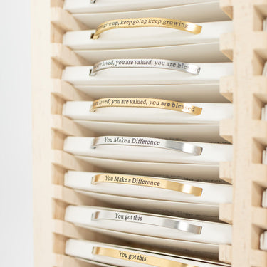 Showcase your cuff bracelets with natural elegance. This slotted wooden display is designed to hold multiple styles securely while keeping them organized and easy to browse. The minimalist design highlights each piece without distraction, making it perfect for retail countertops, craft fairs, or showroom setups. Durable, stylish, and functional—your cuffs have never looked better.