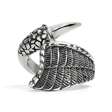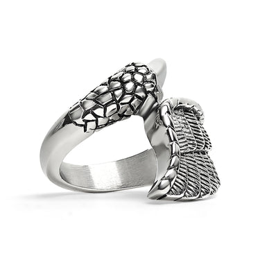 Stainless Steel Dragon Claw And Angel Wing Ring / SCR4007