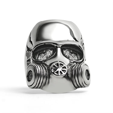 Introducing the Stainless Steel Gas Mask Skull Ring! This unique piece is perfect for those who want to make a statement. The intricate details of the gas mask are replicated in this ring, and the skull adds an edgy touch. Made of stainless steel, this ring is built to last. It's also comfortable to wear and won't cause skin irritation. Whether you're looking for a new addition to your jewelry collection or a gift for a friend, the Stainless Steel Gas Mask Skull Ring is sure to please.