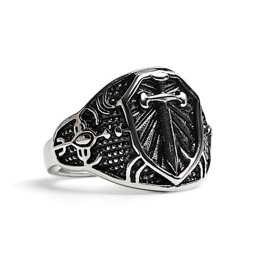 Stainless Steel Medieval Sword and Shield Signet Ring / SCR2221