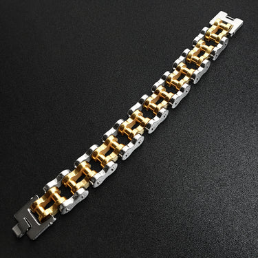 Stainless Steel And 18K Gold PVD Coated Bike Chain Bracelet / WCB1012