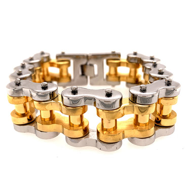 Stainless steel and 18K gold PVD Coated bike chain bracelet.