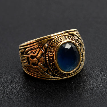 Gold United States Coast Guard Blue Center Stainless Steel Ring / MCR6010