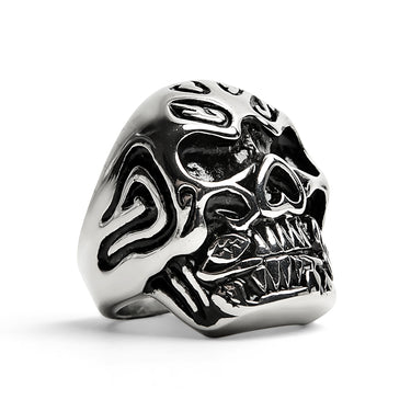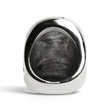 Introducing an updated version of fashionable Stainless Steel Large Filigree Skull Biting Red CZ Rose Ring! This gorgeous ring is made of high-quality stainless steel and features a large filigree skull design with a biting red cubic zirconia rose that can attract more attention in all right ways. Its color never fades over time. The ring is comfortable to wear and makes a great fashion statement.