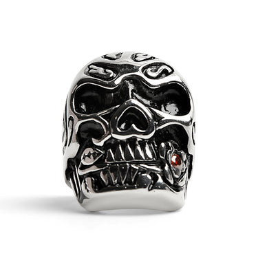 Stainless Steel Large Filigree Skull Biting Red CZ Rose Ring / SCR4000