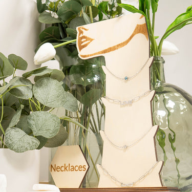 Showcase your necklaces in style with our Wooden Necklace Standee Display – the perfect blend of function and aesthetic. Crafted from durable, natural wood, this display adds a warm, rustic charm to any setting, whether it's a boutique, market stall, or your personal collection at home. This display holds up to four necklaces