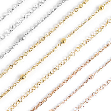 Chain Styles Included: 2.5 mm Loop Chain, 2.5 mm Satellite Chain, 3 mm Circle Cable Chain