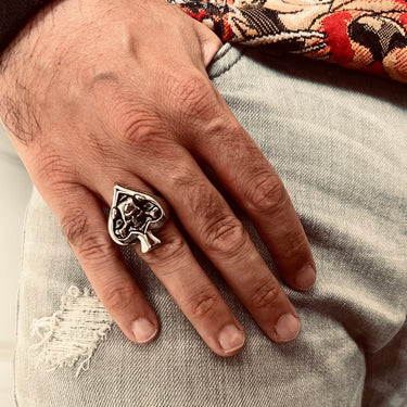 The Stainless Steel Polished Skull of Spades Ace Signet Ring is strong, durable, and doesn't easily break.