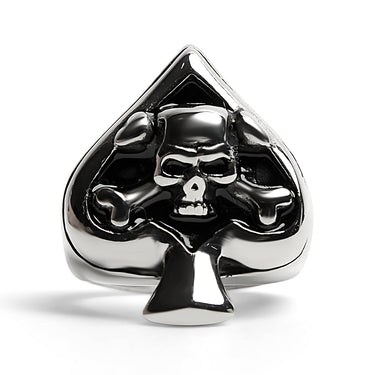 Stainless Steel Polished Skull of Spades Ace Signet Ring / SCR3070