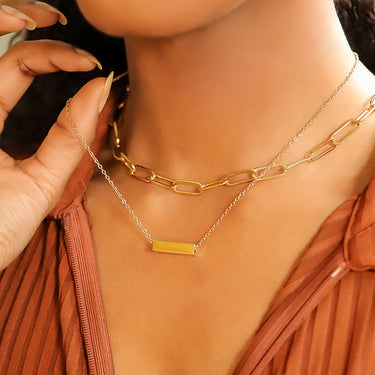 This is a minimalist bar necklace design that looks great layered with other chains and necklaces for a pop of personalization.