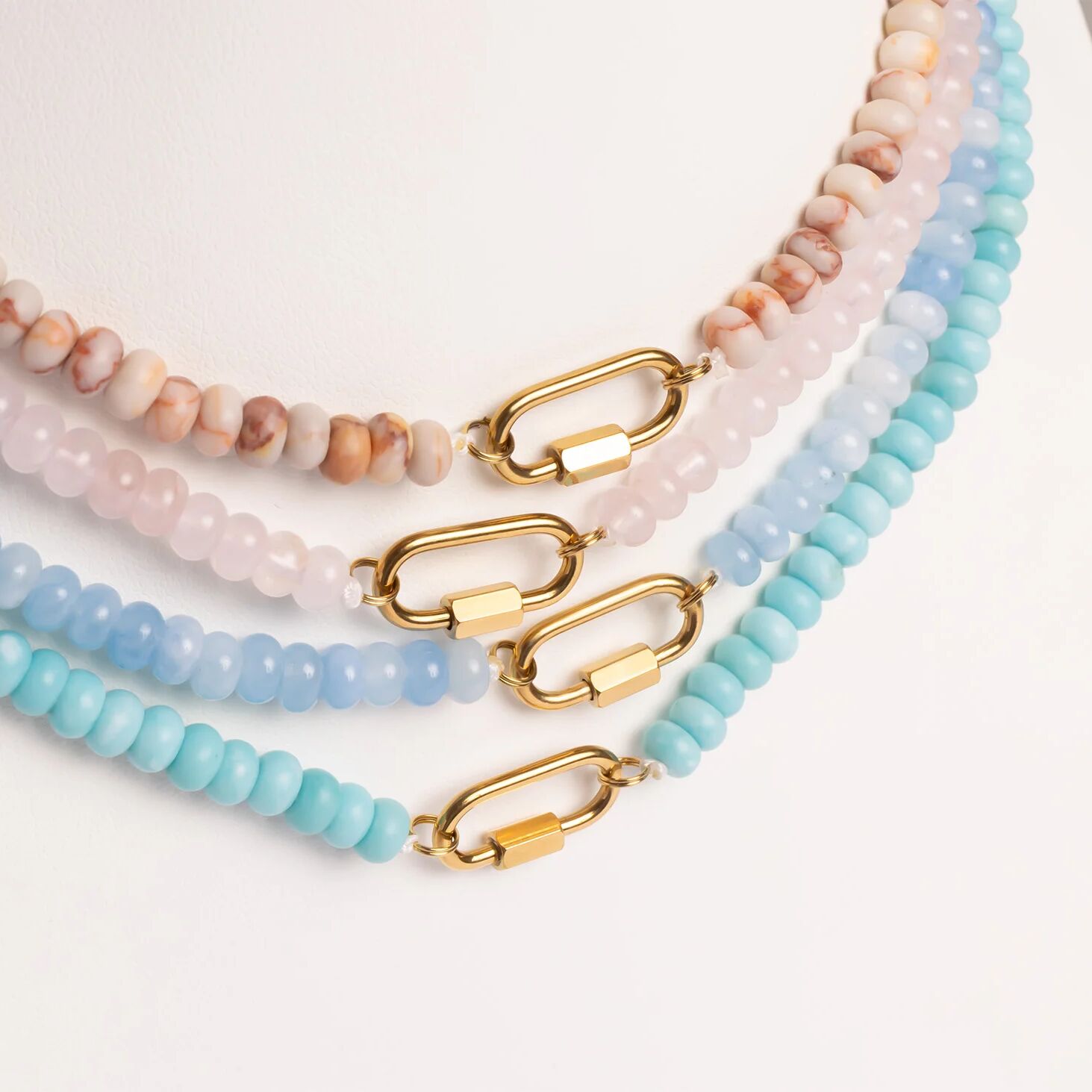 Elevate your everyday style with our Stainless Steel Blue Chunky Bead Carabiner Necklace—an eye-catching blend of bold color and enduring strength. Vibrant cobalt beads bring a striking burst of personality, while the sturdy stainless steel chain grounds the design with modern, polished edge.