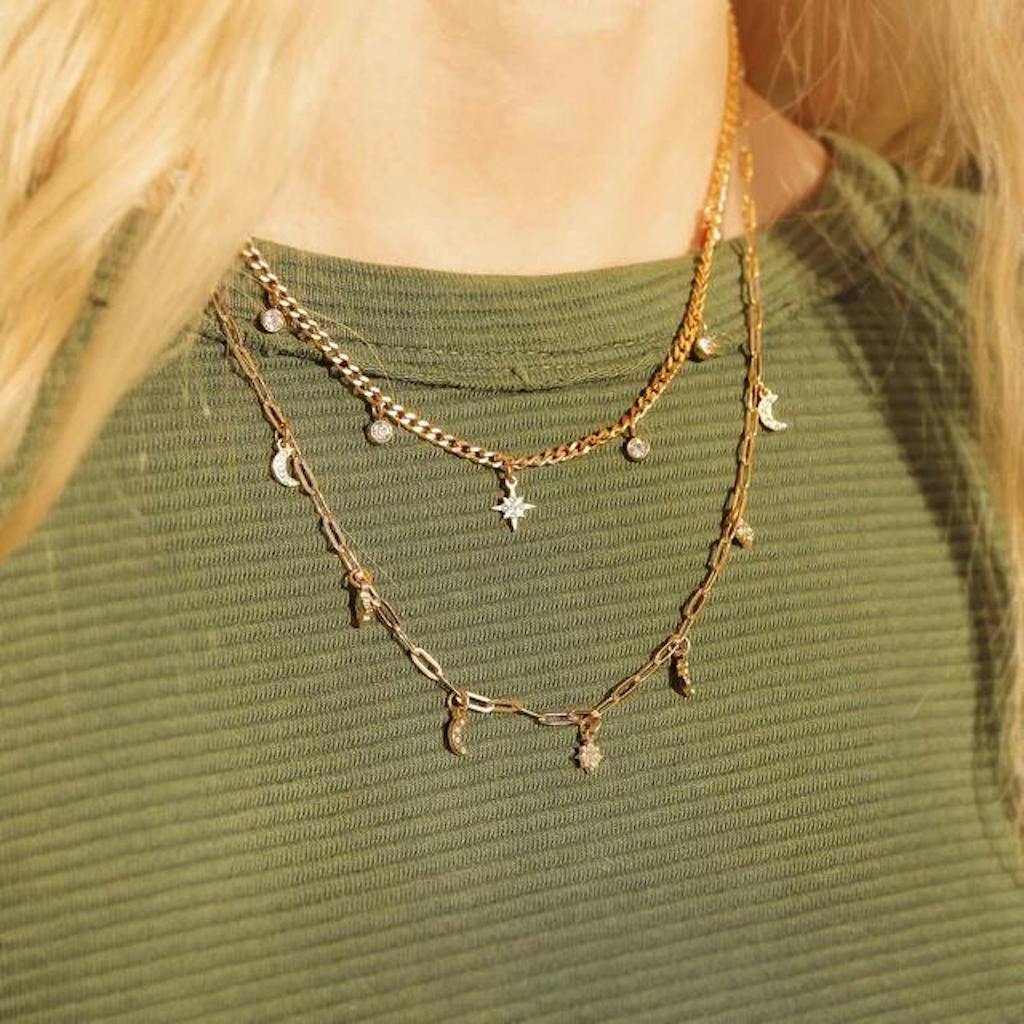 - Pair dainty chains with a longer second layer that includes a pendant