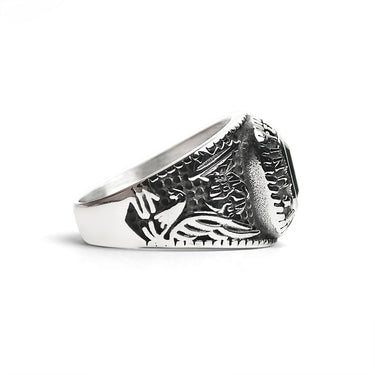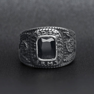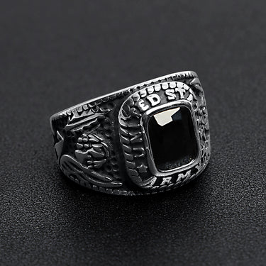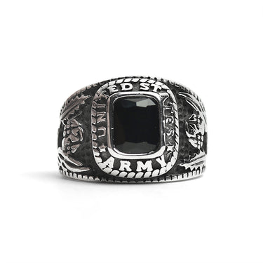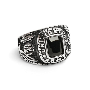 Stainless Steel United States Army Military Men's Ring with Black Stone / MCR3069