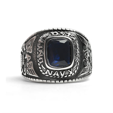 Stainless Steel United States Navy Military Men's Ring with Blue Stone / MCR3068