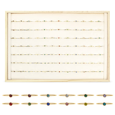 76 PC 18K Gold PVD -belagd rostfritt stål Birthstone Stacking Ring Set & Display / BND0010