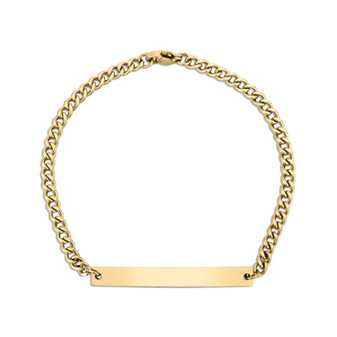 Grossisthandeln 18K guld PVD rostfritt stål böjd Blank Bar Curb Chain Armband är gjord med en egenutvecklad blandning av 316L kirurgiskt stål.