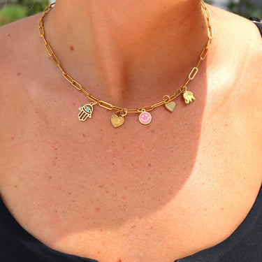 Vår nya Happy Elephant Charm är det perfekta tillägget till dina halsband och armband för den kommande säsongen för ett nyckfullt tillägg! Tillverkad med vår egenutvecklade blandning av kirurgiskt 18K guld PVD-belagt rostfritt stål designat för vardagsbruk, dina kunder har kvalitet, stil och komfort att vårda i många år framöver!