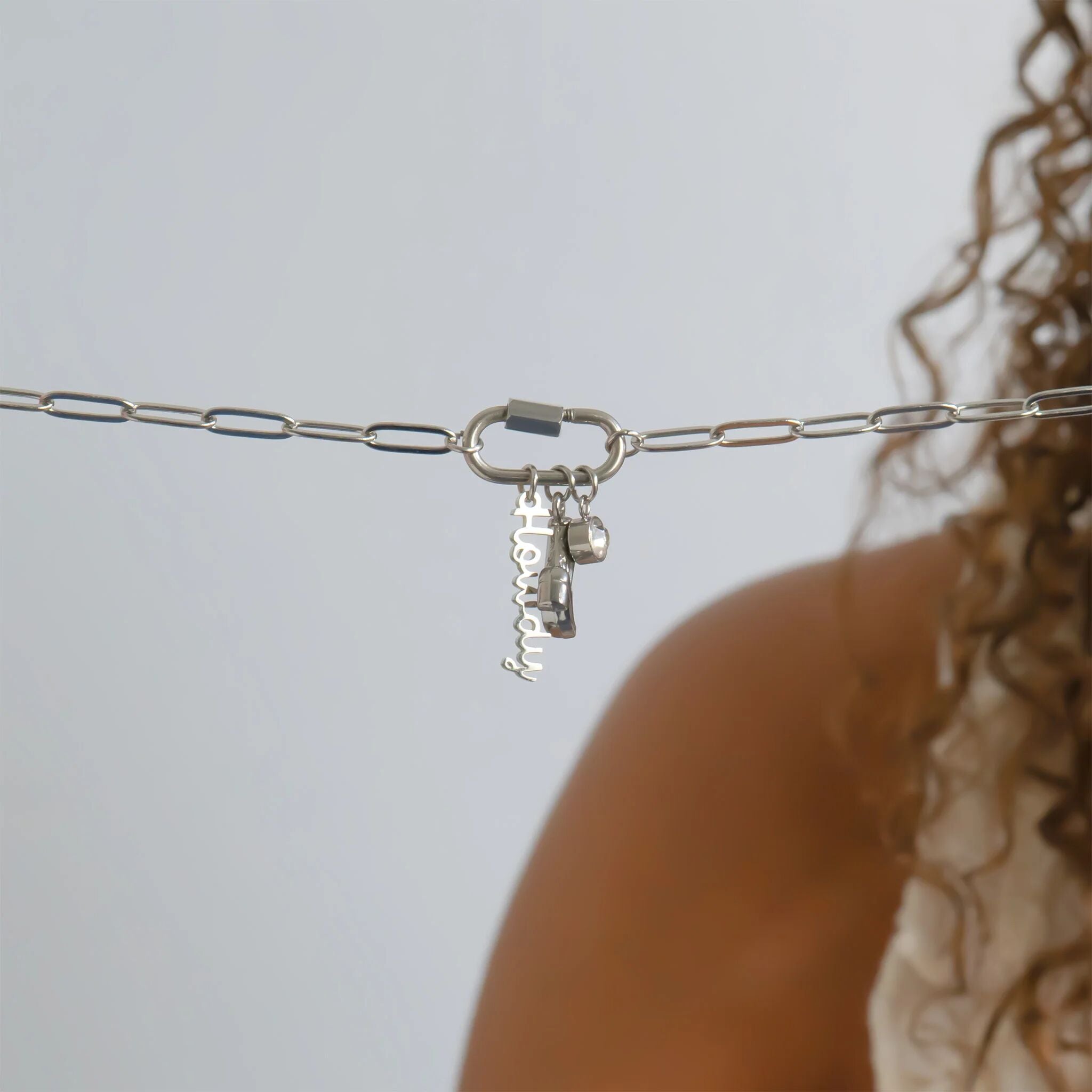 18K Gold PVD Stainless Steel Western Carabiner Necklace / CHN0132