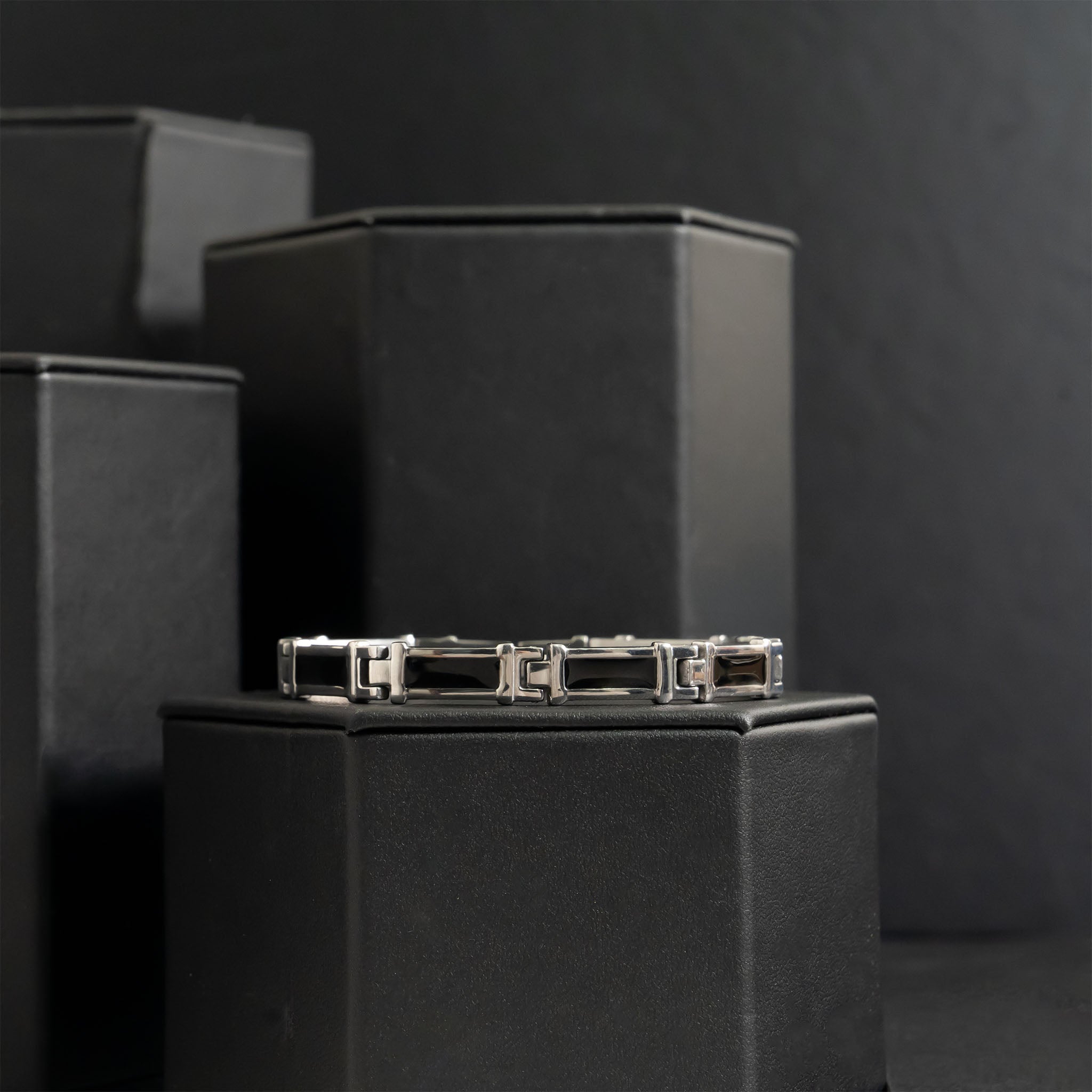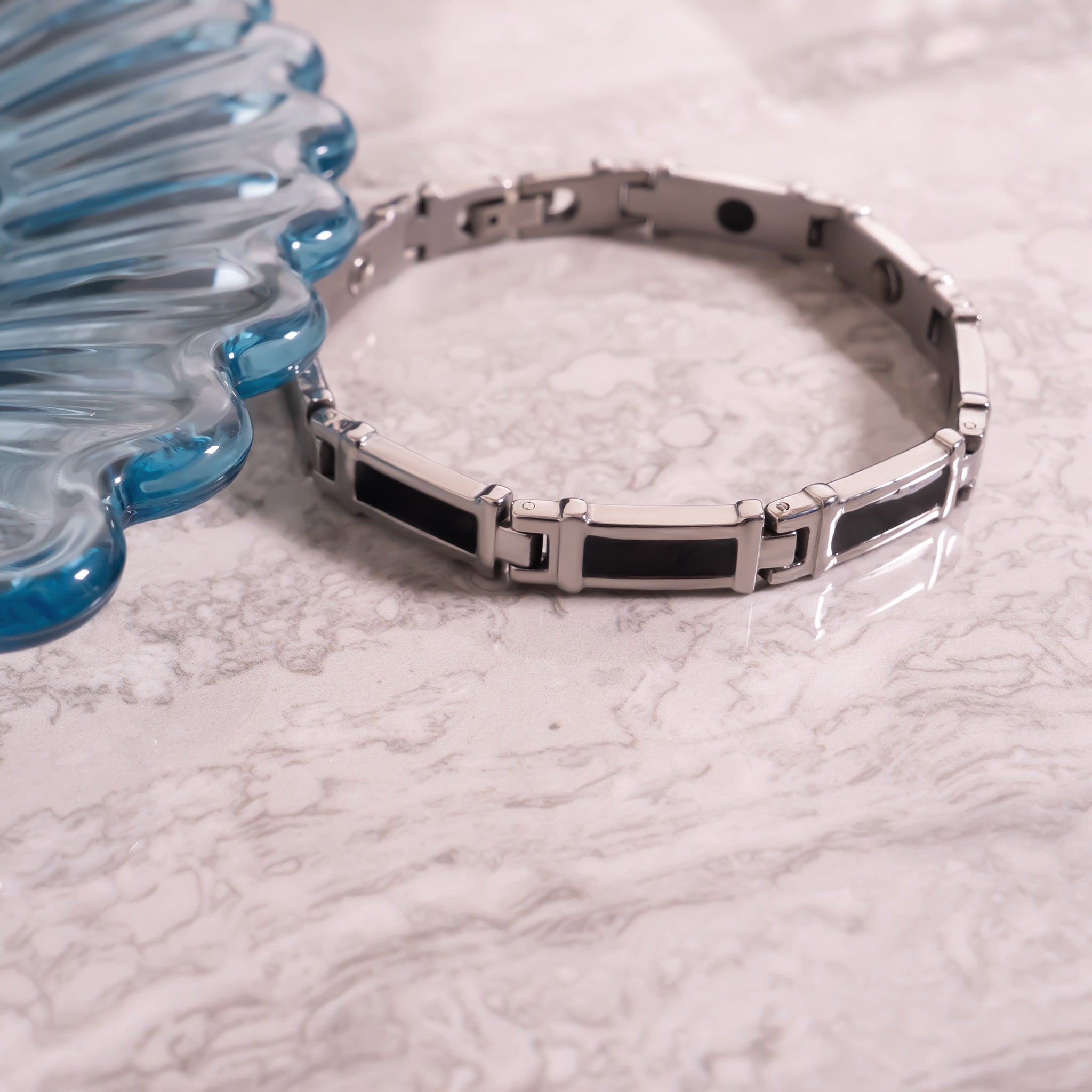 • Det svarta emaljerade magnetiska armbandet i rostfritt stål är starkt, hållbart och böjs inte lätt.